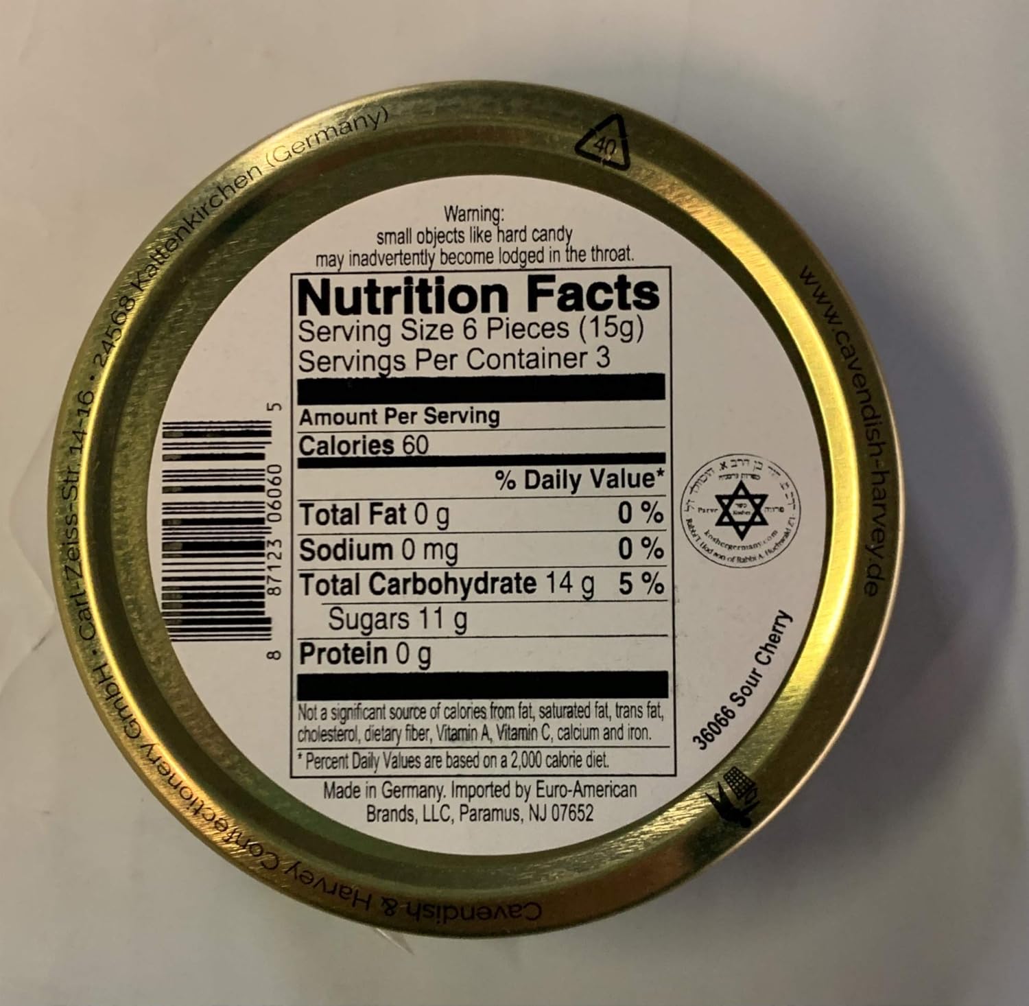 Calories In Cavendish Harvey Candies Sour Cherry Drops Nutrition Facts Ingredients And Allergens